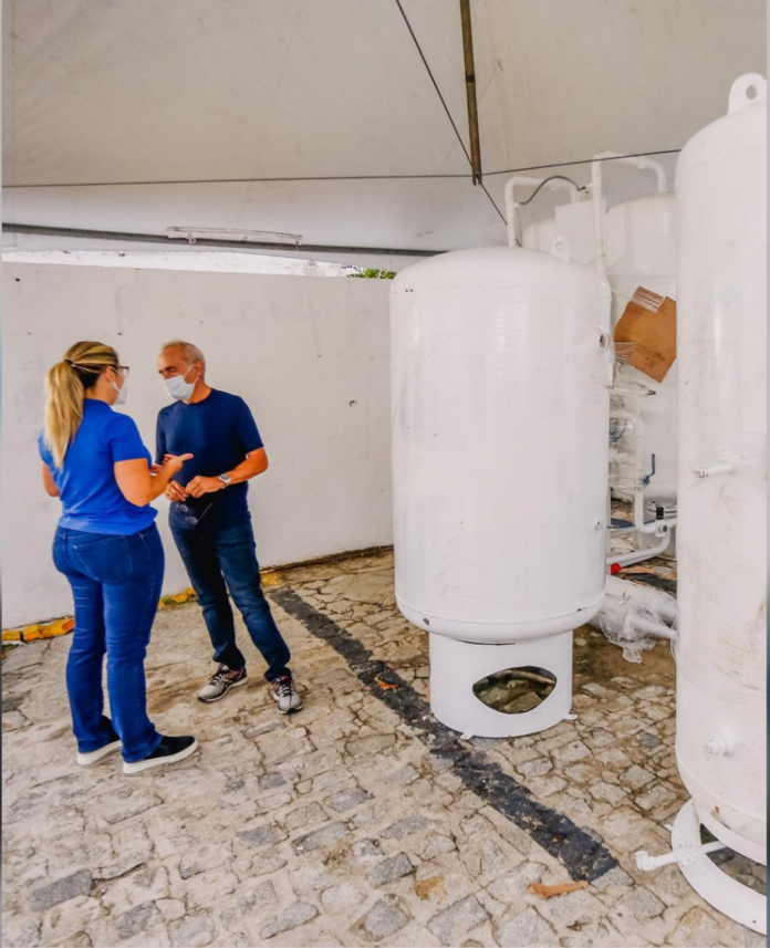 A rede municipal de saúde de João Pessoa começou a instalação de cinco novas usinas para a produção de oxigênio em hospitais, num momento em que tem crescido o número de pacientes com Covid-19. O primeiro a receber os equipamentos é o Prontovida, que foi visitado pelo prefeito Cícero Lucena, neste sábado (27). Com o novo equipamento, o hospital terá a capacidade de produção de oxigênio dobrada, o que permitirá que ele passe de 20 leitos de UTI para 45.